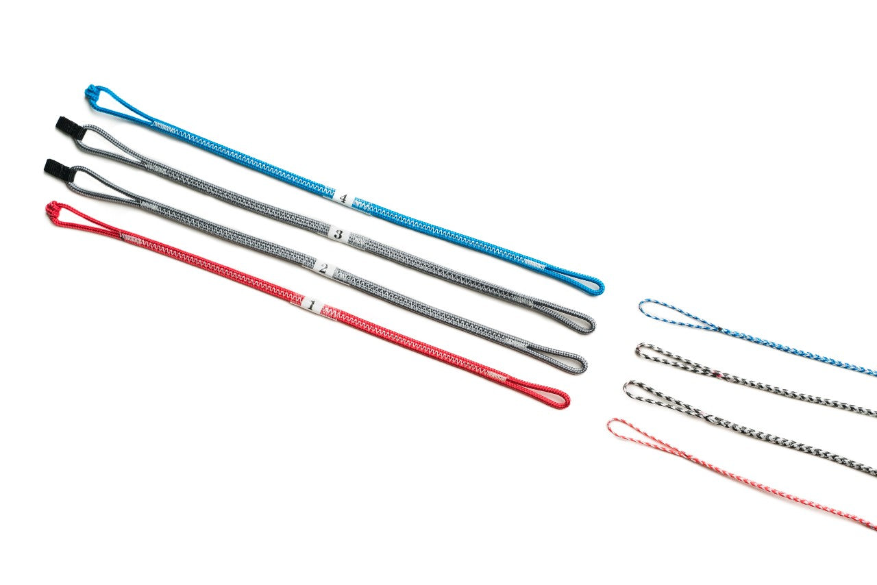 Colour coded 500kg front / 300kg back lines are precision cut, pre-stretched, spliced and sewn in our own production facility to guarantee accuracy. We use the highest quality Bio-based Dyneema® - this material has the same performance as conventional Dyneema® with a carbon footprint that is 90% lower than generic HMPE fiber. Our modular design makes adding or removing extensions quick and easy via removable pigtail end connectors.